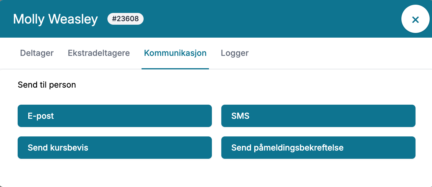 - Velg fanen Kommunikasjon på toppen av deltagerbilde, klikk på knappen Send kursbevis.