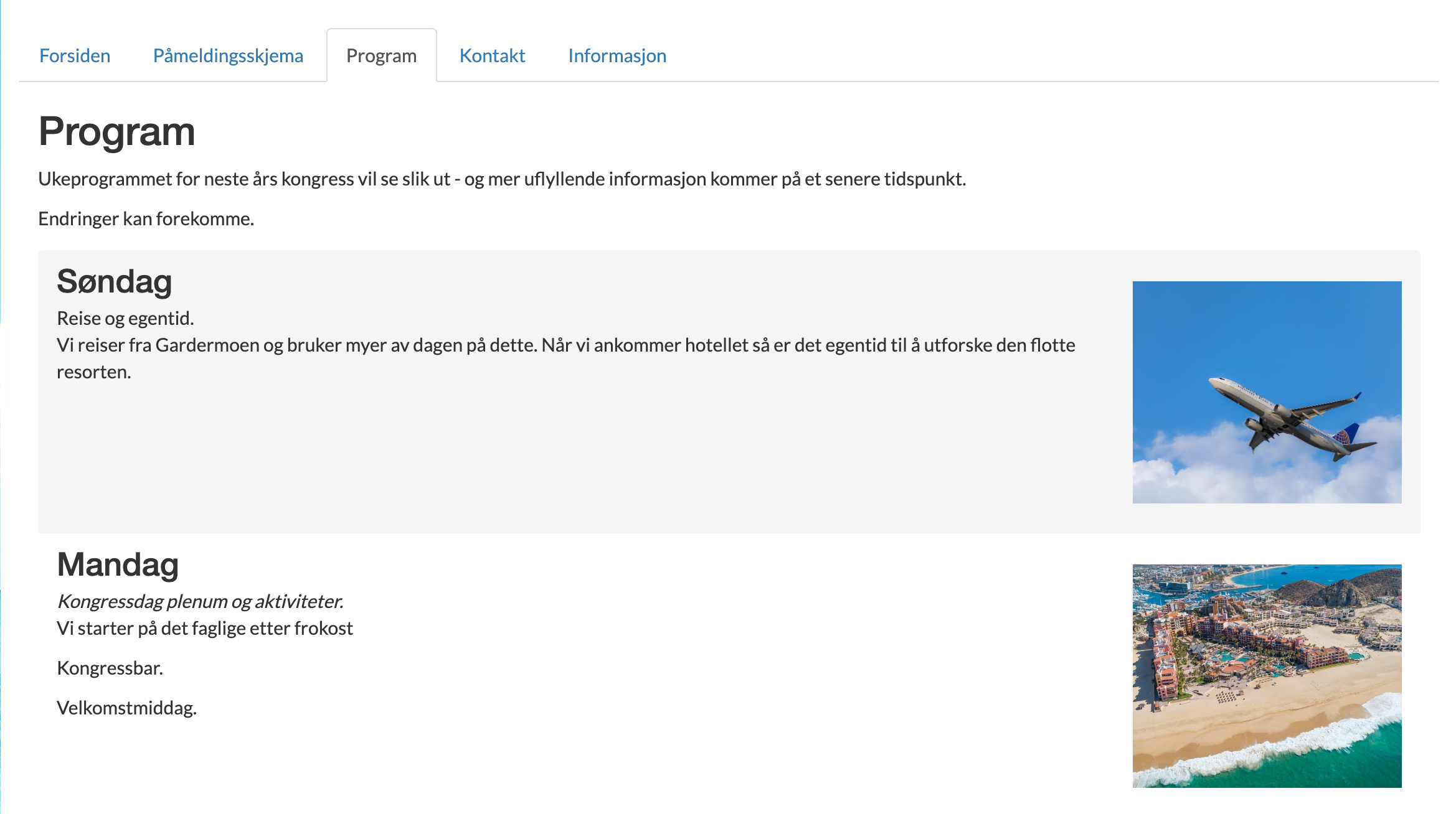 Programsiden er en av sidene du kan legge til på ditt arrangementsnettsted.