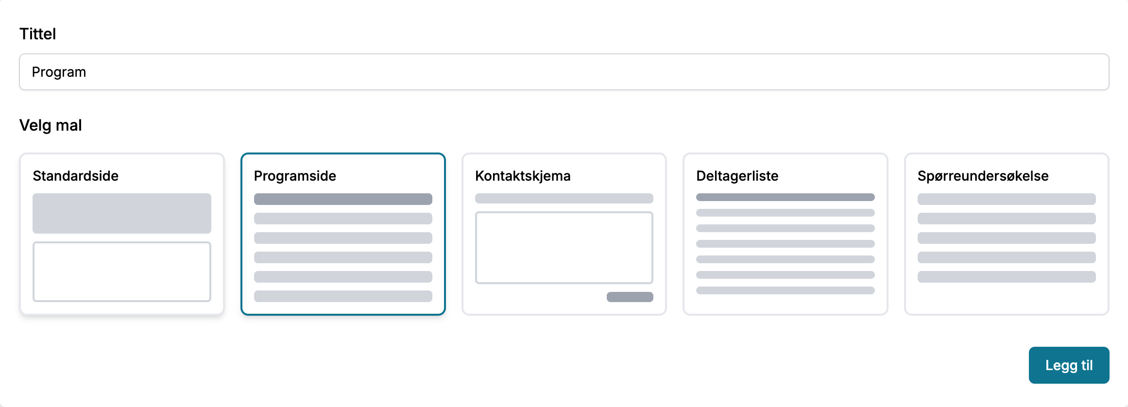 Legg inn tittel, velg Programside og trykk Legg til.
