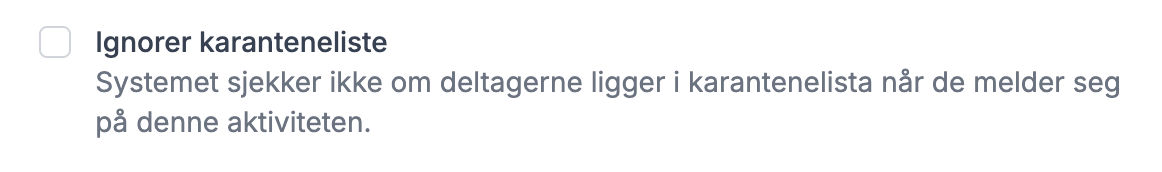 Ønsker du å benytte karanteneliste i påmeldingssystemet?