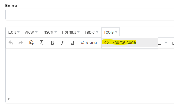 Når man trykker på Tools - SourceCode får man opp et større vindu hvor man kan legge inn html formatering, eller endre på noe.